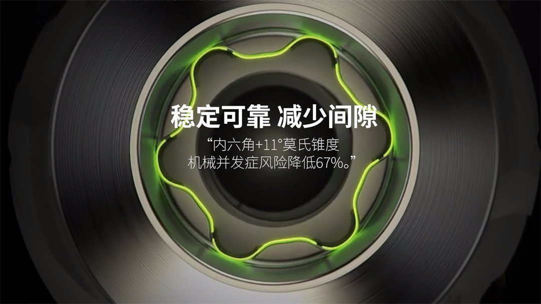 第一是稳定性革新,内六角+莫氏锥度的双重保障——T-ST系列采用内六角+11°莫氏锥度接合 ,机械并发症风险降低40%,初期稳定性提升50%,尤其适合骨量不足的高龄患者。