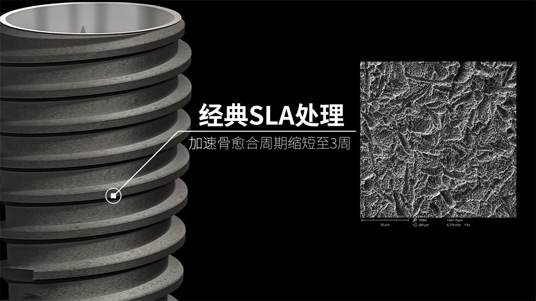 第二是表面处理技术升级。T-ST种植系统实现经典SLA工艺的再优化——T-ST沿用经典SLA喷砂酸蚀工艺,通过微米级粗糙面加速骨结合,骨整合周期缩短30%(约3-4周),且术后骨吸收量降低50%。相较于士卓曼亲水植体,T-ST系统在成本可控前提下,实现80%的临床效能,平衡了疗效与经济性。