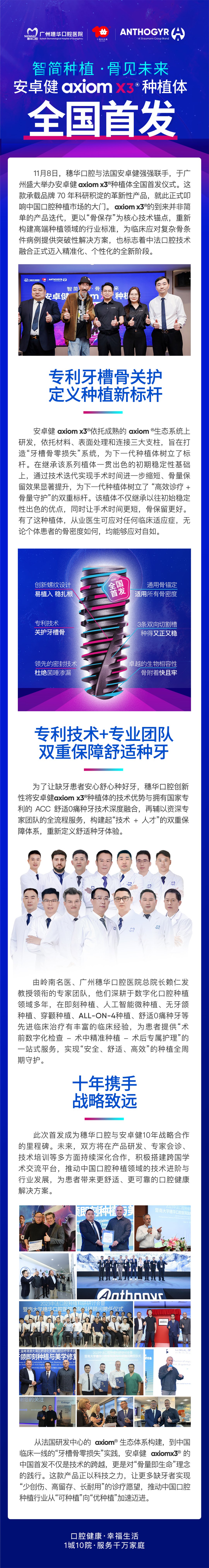 11 月 8 日,穗华口腔与法国安卓健强强联手,于广州盛大举办安卓健 axiom x3® 种植体全国首发仪式。这款承载品牌 70 年科研积淀的革新性产品,就此正式叩响中国......